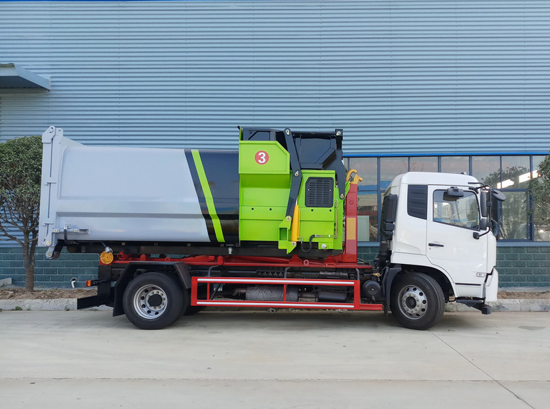 12方移动压缩垃圾箱配套钩臂式垃圾车